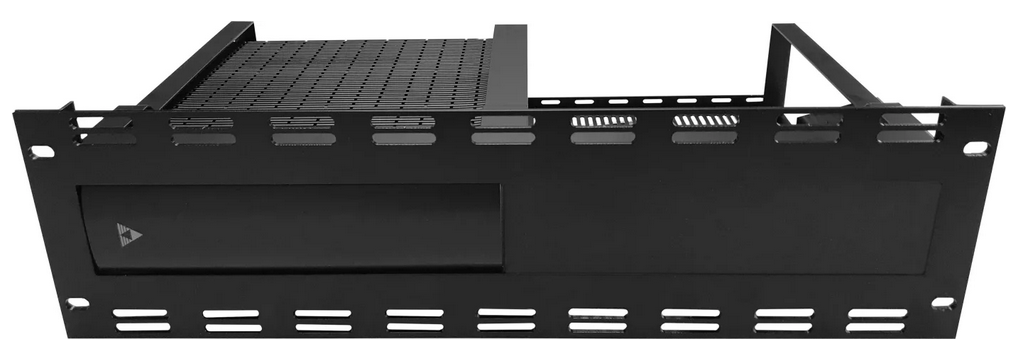 The Triad One Rack Mount is intended for use with one or two Triad One Streaming Amplifiers and provides easy installation in an equipment rack. The 3U rack mount has a custom faceplate designed for a professional presentation and includes a blank plate that can be put in place when only one Triad One is installed.