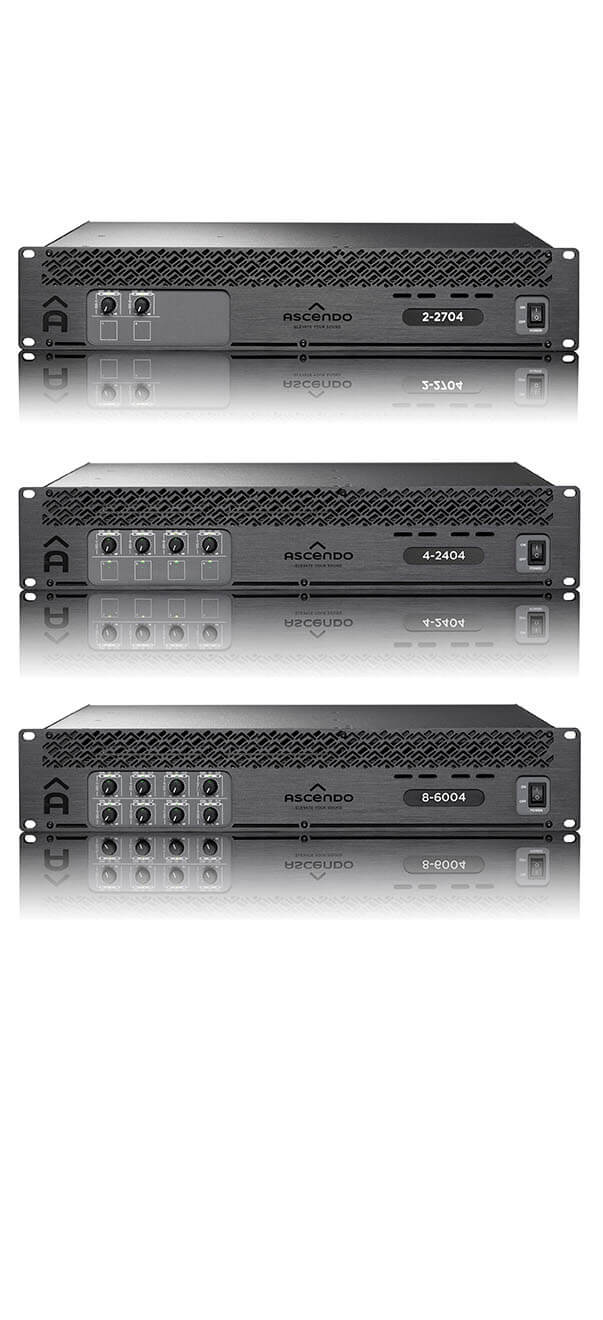 This powerful amplifier range from ASCENDO features state-of-the-art amplification technology, utilizing a very efficient and green design, without diminishing the quality of sound and dynamics that ASCENDO amplifiers are known for.